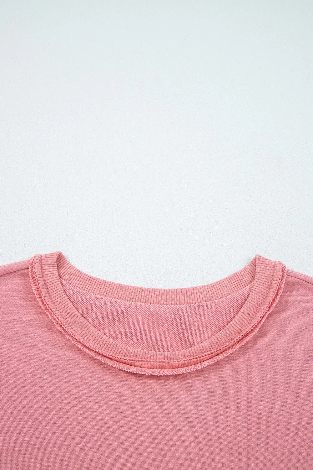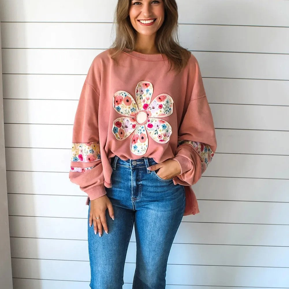 Peach Blossom Floral Applique Baggy Pullover Sweatshirt
